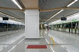 Zhejiang Chinese Medical University (Chinese: 中医药大学) is a metro station on Line 4 and Line 6 of the Hangzhou Metro in China. It is located in the Binjiang District of Hangzhou and it serves the nearby Zhejiang Chinese Medical University.[1][2] The station offers same direction cross-platform interchange between the two lines.