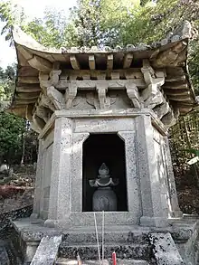 The Zhenru Temple was built between 806 and 810 during the mid-Tang dynasty (618–907) by monk Daorong, where he taught Chan Buddhism with his disciples Quanqing (全庆) and Quanhui (全悔) for almost 70 years. In the year 883 during the reign of Emperor Xizong, the local military governor Zhong Chuan (钟传) invited master Daoying (道膺) to the temple to preach Buddhism. The emperor bestowed a plaque inscribed by with Chinese characters of "Longchang Chan Temple" (龙昌禅院).[1][2]