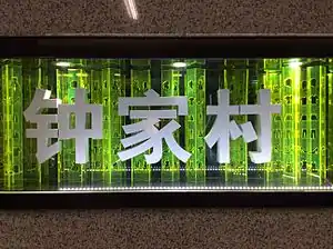 Zhongjiacun Station (Chinese: 钟家村站) is a transfer station on Line 4 and Line 6 of the Wuhan Metro. It entered revenue service on December 28, 2014. It is located between Hanyang Avenue (汉阳大道) and Yingwu Avenue (鹦鹉大道; literally "Parrot Avenue") in Hanyang District.[1][2]
