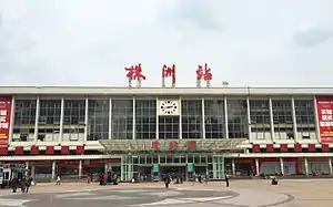 Zhuzhou railway station (Chinese: 株洲站; pinyin: Zhūzhōu zhàn) is a railway station in Lusong District, Zhuzhou, Hunan, China. It is located at the intersection of the Beijing–Guangzhou railway and the Shanghai–Kunming railway, and is also an intermediate stop on the Changsha–Zhuzhou–Xiangtan intercity railway.[1]