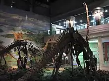 In 1980s, vast quantities of dinosaur fossils were excavated in the Middle Jurassic Shaximiao Formation, 7 km north-east from downtown Zigong, including a dinosaur named after the township, Dashanpusaurus. Because of the unique and articulated (intact) bone remains, Zigong is important to paleontologists and dinosaur enthusiasts. The Zigong Dinosaur Museum was established in 1987, becoming the first museum based almost entirely on dinosaurs in Asia. Mounted specimens include Omeisaurus, Gigantspinosaurus, Yangchuanosaurus, Huayangosaurus and Xiaosaurus.