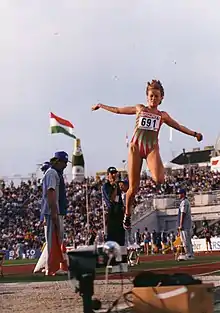 Zita Ajkler (born 9 June 1975) is a Hungarian long jumper. She is a 16-time Hungarian national champion in the long jump, triple jump, heptathlon, and 100-meter hurdles. Her personal best is 676 cm in the long jump and 13.99 m in the triple jump (the national record is 14.00 m); 13.75 s in 100-meter hurdles (wind-1.2), 8.35 s in 60-meter hurdles, and 5,323 points in the heptathlon.