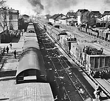In 1913 in both Osipovoye and Linitskoye lived about 6,000 people.[3] In the beginning for sometime the train station was classified of the third category with its locomotive depot accounting for 4 locomotives.[3] In December 1883 when there ended construction of the new train station building, there were 29 locomotives and the depot employed some 92 workers.[3] In the 1890s the rail hub was shipping out some 580,000 poods of bread annually.[3]