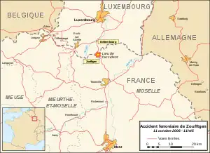 - ↑ "Accident ferroviaire survenu à Zoufftgen (F): Etat de la situation à 15h24" (in French). Luxembourg Government. 11 October 2006. Retrieved 7 July 2010.