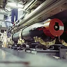 In addition, the submarines are based on the U.S. Navy Barbel class with the teardrop hull design, which results in the submarines producing less noise.[9] The propulsion of the Zwaardvis class is also different from the Dolfijn-class submarines, for example, it has a single propeller instead of the two propellers the latter has. Furthermore, it has more diesel engines, the batteries require less charging time, it can launch missiles and torpedoes from greater depths, the diving depth has increased substantially, and lastly it can stay longer submerged.[10] The introduction of the Zwaardvis-class submarines also led to the Royal Netherlands Navy using the Mark 37 torpedoes. In 1988 the Mark 37 torpedoes for the Zwaardvis-class submarines were replaced with the newer Mark 48 torpedoes.[11]